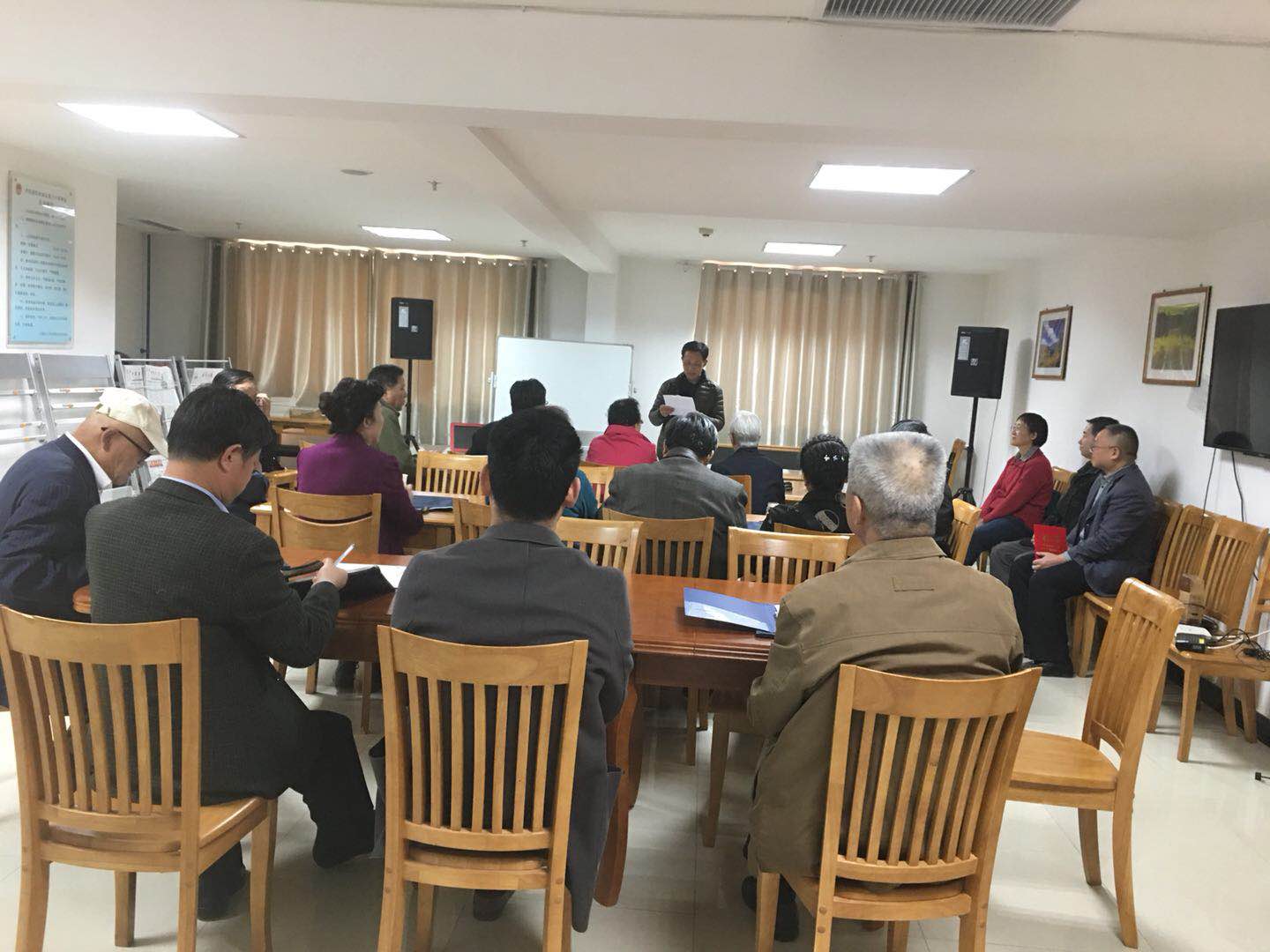 离退休老同志合唱队”在省院雁滩家属院老干部活动室举行开班仪式。省院机关部分离退休老同志及家属、省院机关党委专职副书记刘建生、政治部老干部处全体工作人员参加了此次开班仪式活动。