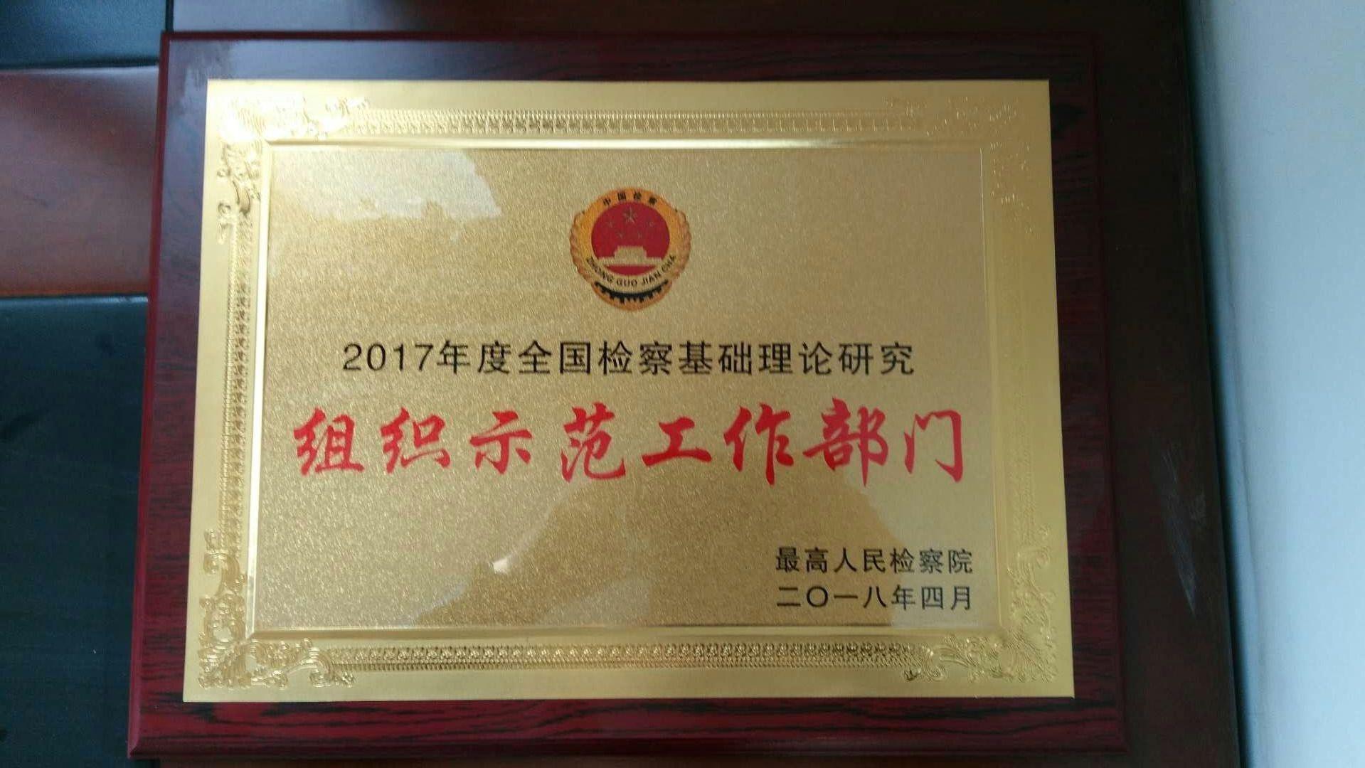 据了解,为调动全国各省级司机社组织推动检察理论研究的积极性,高检院于今年首次进行了“全国检察基础理论研究组织示范工作部门”的评选,获奖部门均为在2017年度组织检察理论研究文章撰写、组织报送评奖、报送成果质量、组织年会征文等方面表现突出的单位。
