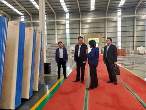 甘肃梅隆石材集团有限公司是一家专业从事空间设计、施工、石材精细化加工、销售及国际进出口贸易的大型多元一体化公司。赵小庚主任实地参观了生产车间、产品展厅、党建室等场所,详细询问了解了企业产品生产流程、市场前景以及公司党建工作等情况。