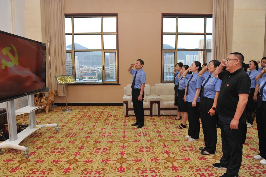 第四检察部主任陈泽林领誓全体党员重温入党誓词,庄重的气氛带给全体党员油然而生的仪式感和责任感,支部党员对党组织的归属感进一步增强。