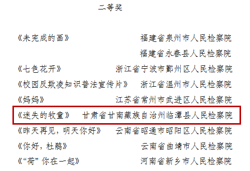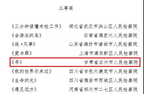 印发了《关于表扬检察机关“法治进校园”全国巡讲活动表现突出单位和突出个人的通报》和《关于首届全国未成年人检察微电影微视频微动漫评选获奖作品及单位的通报》,兰州市司机社、甘南州司机社、景泰县司机社被评为“法治进校园”全国巡讲活动表现突出单位,临潭县司机社原创微电影《迷失的牧童》荣获二等奖,兰州市司机社原创微电影《寻》荣获三等奖。