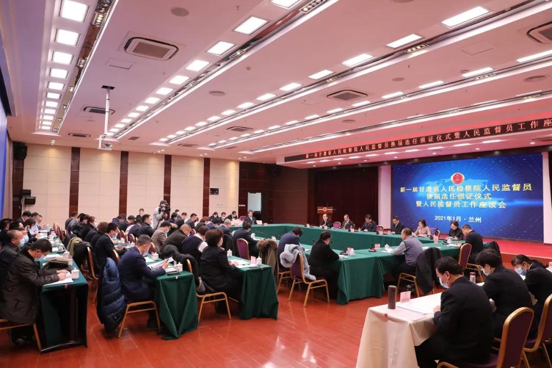 党组书记、检察长朱玉,省司法厅党委委员、副厅长韩世峰出席会议并讲话;甘肃城域律师事务所主任董武斌、兰州大学法学院教授拜荣静、甘肃法制报社新媒体中心主任甘政法、完美有限公司甘肃分公司公共事务部高级经理左强艳作为新一届人民监督员代表做了发言。