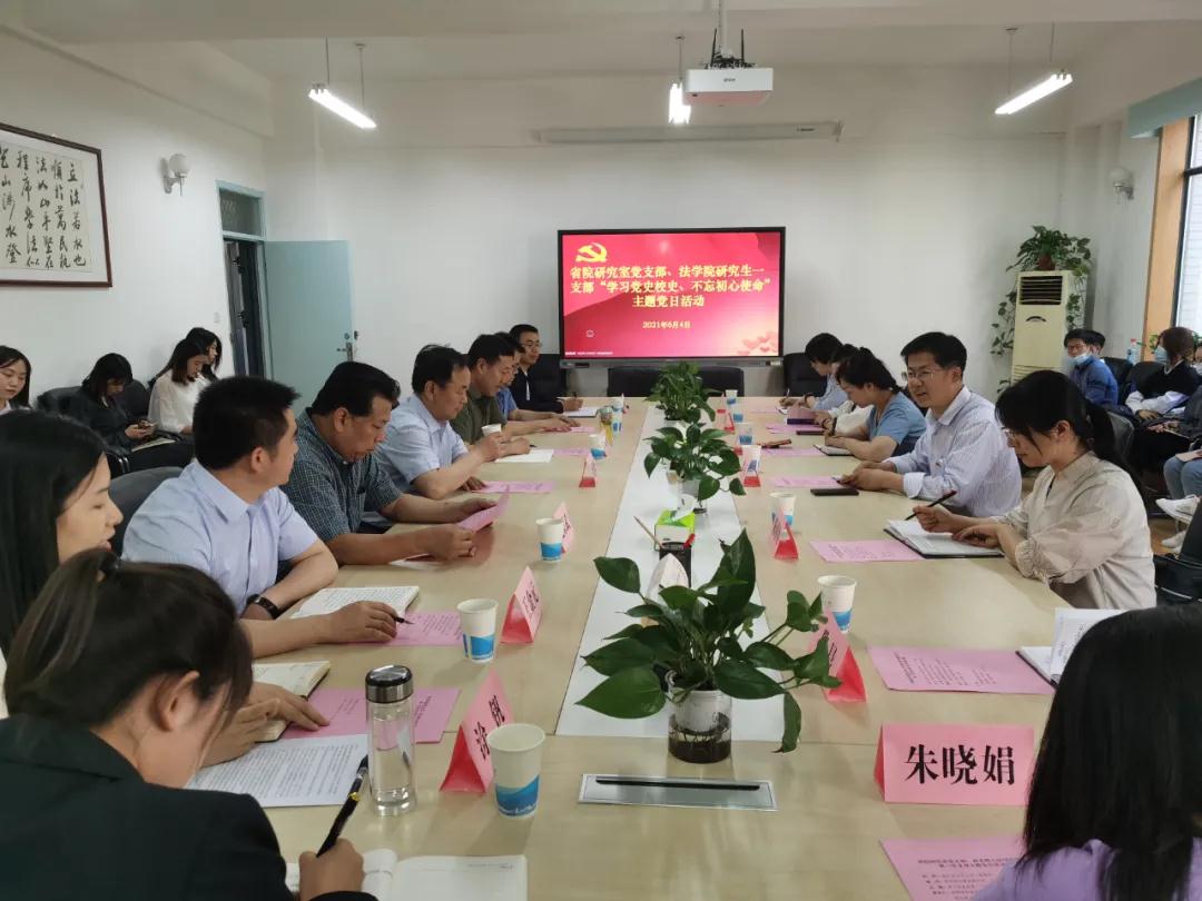 法律政策研究室党支部书记金石和西北师范大学法学院第一党支部的涂钒分别从如何做好支部党建工作、如何实现党建与业务工作相融合等方面介绍了各自的基本情况并向全体党员讲了党课。两个支部全体党员还进行了党史学习研讨,从如何发挥党员先进性和如何做好党史学习教育等方面进行了交流,进一步提升了思想认识。