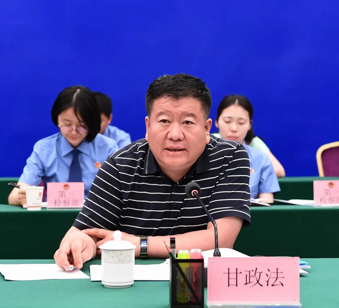 二级高级检察官樊伟,政治部副主任王瑞成,法律政策研究室主任金石以及第一至第十检察部、法律政策研究室、案件管理办公室干警参加座谈。