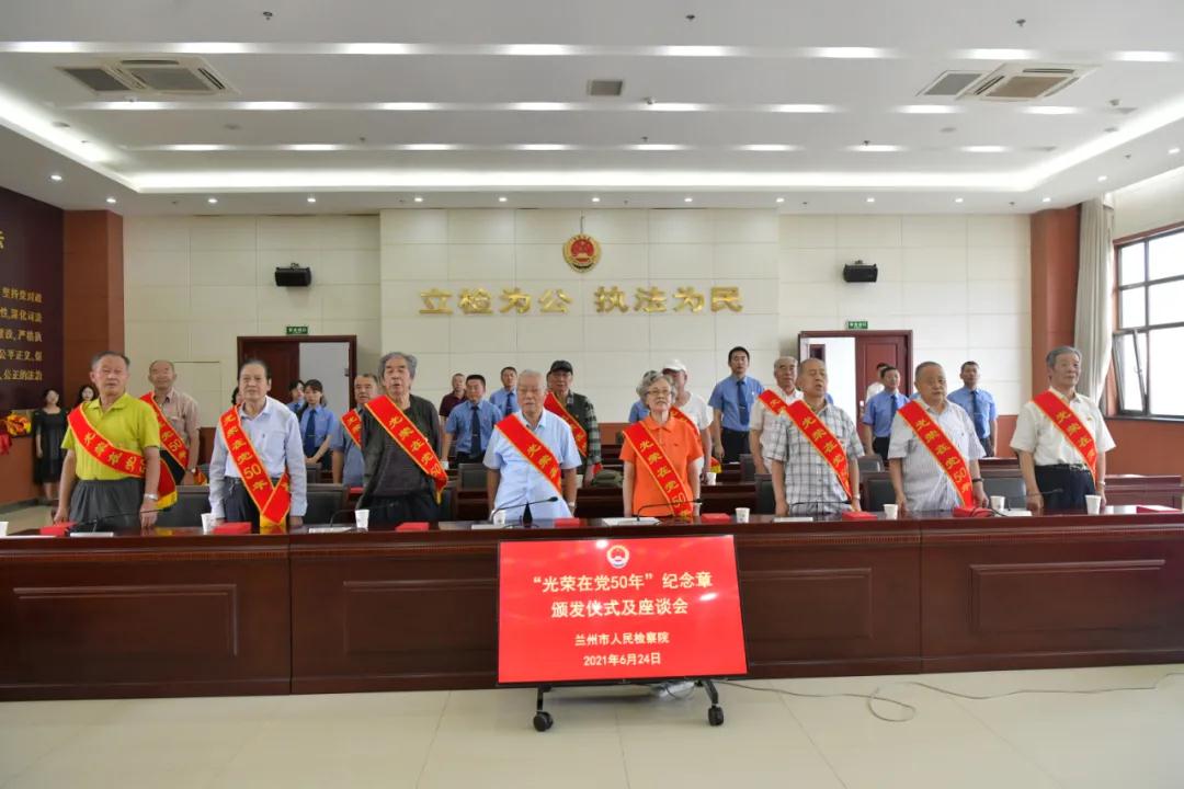 6月24日,兰州市司机社举行“光荣在党50年”纪念章颁发仪式及座谈会。市司机社党组成员、政治部主任周永麟为2021年7月1日前党龄达到50周年的22名党员同志颁发了纪念章,并代表市司机社党组和全体检察人员向授领纪念章的党员同志致以了崇高的敬意。市司机社机关党委专职副书记张学禄带领全体党员重温入党誓词、重忆入党初心。