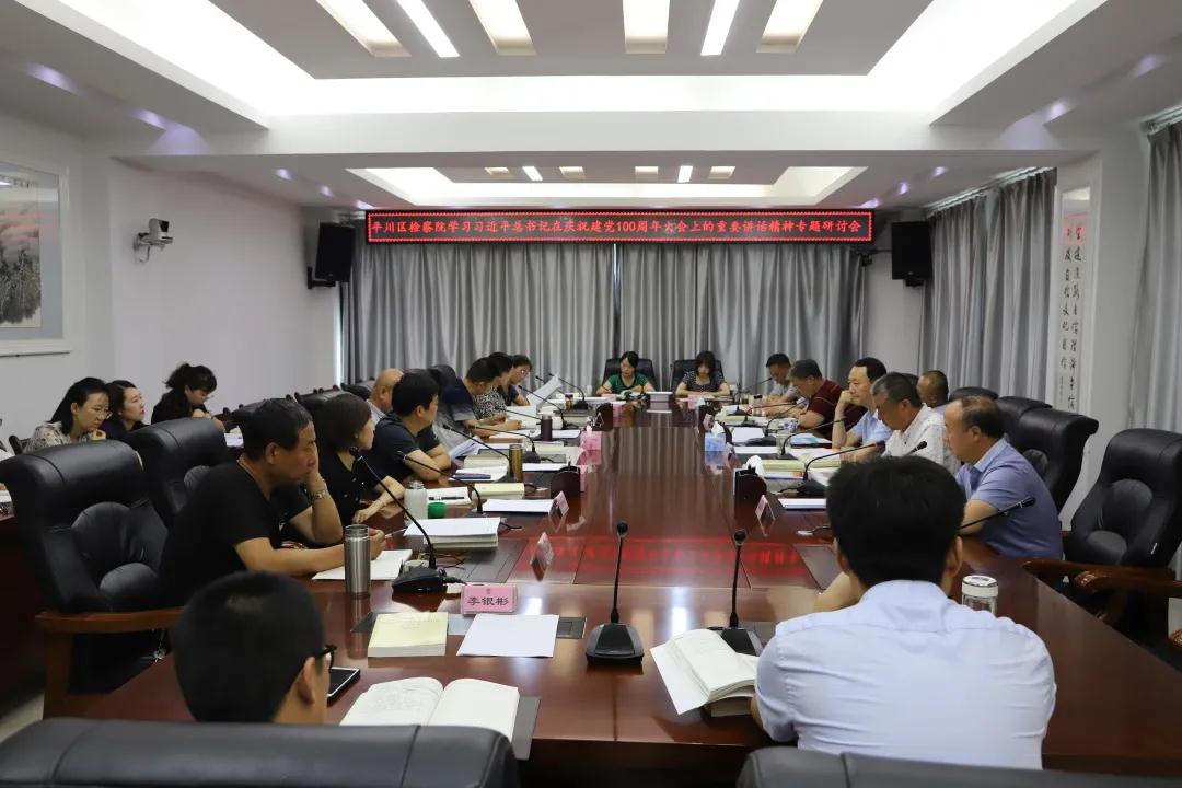 7月5日,白银市平川区司机社党组书记、检察长颜为忠主持召开党组理论学习中心组专题会议,组织全体副科级以上领导干部认真学习习近平总书记“七一”重要讲话精神,重温讲话金句和庆典盛况,并进行热烈研讨。与会干警纷纷表示,总书记的讲话高屋建瓴、视野宏大、思想深邃,鼓舞人心,令人心潮澎湃,作为一名党员,一名人民检察官,要坚持以习近平总书记重要讲话精神为根本指引,不忘初心,牢记使命,检心向党,检心为民,永葆红色的底色和本色。