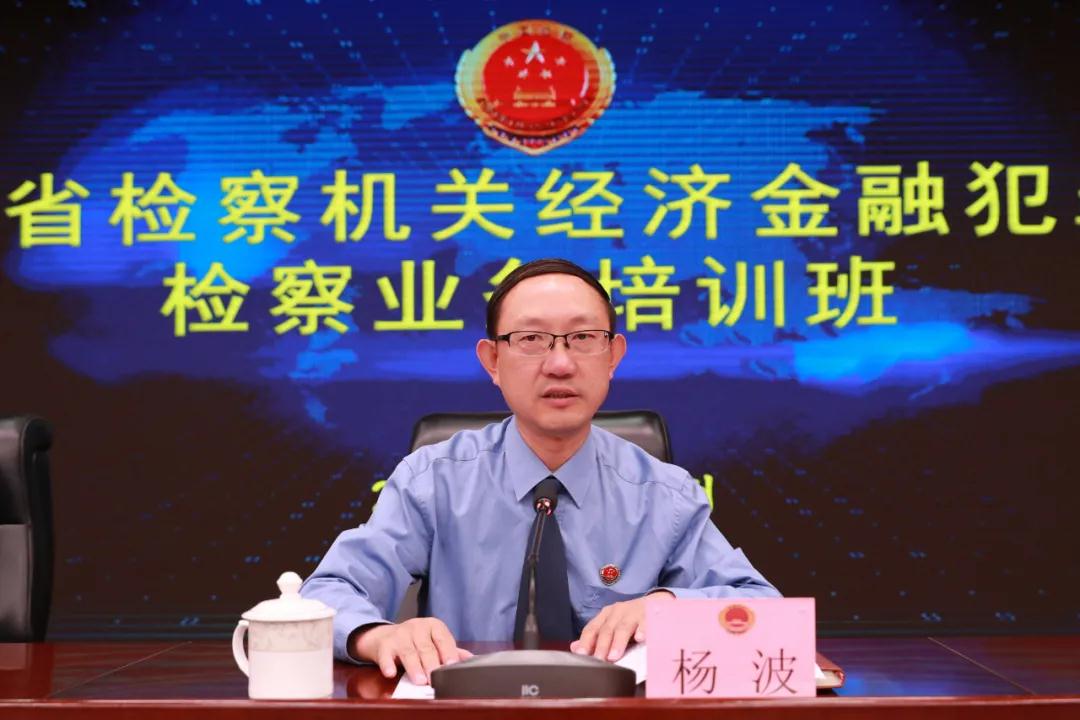 杨波指出,此次培训是全省检察机关适应新时期经济金融犯罪检察工作任务,贯彻落实中央、省委和最高检关于防范化解金融风险、惩治和预防网络犯罪决策部署的重要举措。近年来,全省检察机关积极参与金融风险治理、网络综合治理工作,充分发挥刑事检察职能,取得了良好的办案效果,但惩治金融犯罪检察工作仍面临很多困难和问题,存在不少短板弱项。举办这次培训班,旨在通过专家讲授审查经济金融犯罪的经验、技能,解决办案中的疑难复杂问题,努力提升理论素养、履职能力和工作水平,使参训干警在深入理解、融会贯通上下功夫,在举一反三、触类旁通上做文章,再结合实际工作,在学以致用上出成绩,推动全省经济犯罪检察工作迈上新台阶。