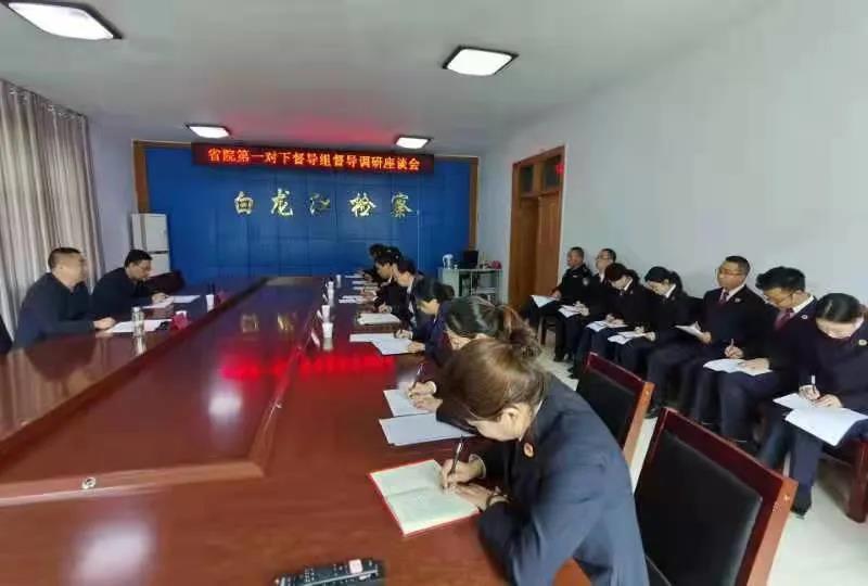 对下第一督导组督导调研白龙江林区司机社检察队伍教育整顿查纠整改环节工作。
