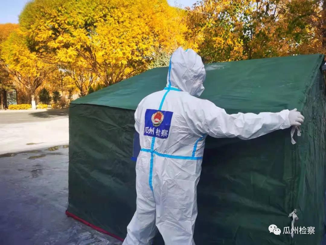 “我院需选派一名干警到‘区级疫情隔离点’执行相关任务,现请有意愿的干警群里报名。”“我!”10月26日,兰州市红古区司机社干警杨文军作为一名退伍军人,主动请缨到隔离点值守。“为避免防疫物资浪费,我们防护服一穿就是8个多小时,遇上逐楼层消杀或者搬运防疫物资的任务,身上的衣服是湿了干,干了湿,但只要想到我的工作做得细一点,群众受到的威胁就少一点,再苦再累也值得。”杨文军说。