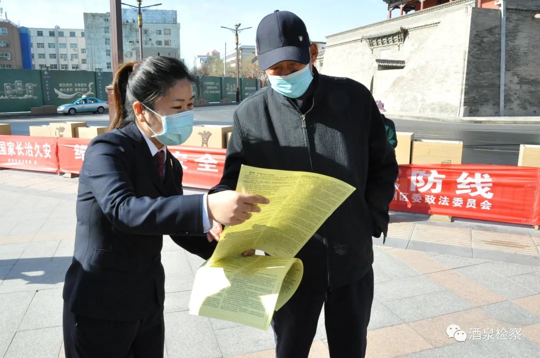 近日,酒泉市检察机关开展“线上+线下”全民国家安全教育日宣传活动,检察干警积极参与闯关挑战答题活动,在进一步巩固国家安全相关法律法规的同时,走上街头、走进社区,宣传相关法律法规,引导广大群众关注国家安全。