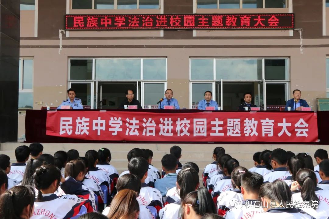 5月11日,积石山县司机社党组书记、检察长马凌云以积石山县民族中学法治副校长的身份为全校师生作了“法与人生”的法治讲座。马凌云在查看了门卫值班、消防安全设施、安全监控设施、食堂管理情况,并与学校负责人座谈交流后,对加强校园安全管理方面进行了探讨,要求学校进一步做好教职员工入职审查工作,加强对强制报告制度的学习和落实。宣讲大会上,马凌云依托丰富的办案经验,结合未成年人犯罪案特点和易被侵害的情形,从防校园欺凌、防性侵、防电信诈骗等方面进行了讲解,提醒同学们加强自我防范,用法律武器保护自己,告诫师生要珍爱生命、远离毒品,关爱生命、安全出行,严防各类突发事件和安全事故的发生。