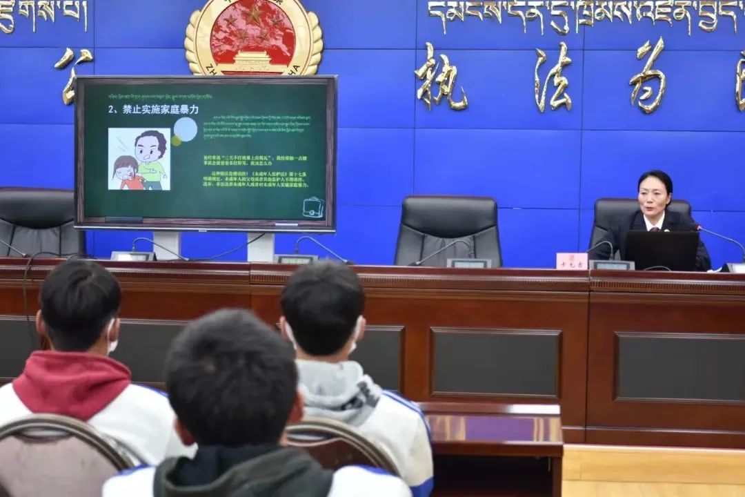 5月26日,甘南州司机社举办检察开放日活动。检察官卡毛吉以藏汉双语的形式给同学们上了一堂生动有趣的法治课,教导同学们在日常学习生活中要学法、知法、懂法、用法,善于运用法律武器维护自己的合法权益。