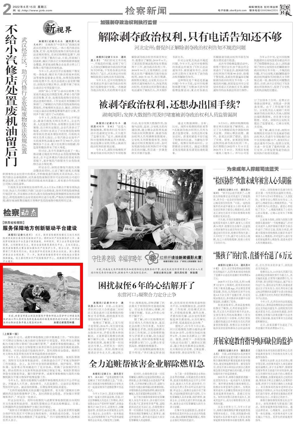 2022年6月15日,检察日报二版刊发甘肃省祁连山林区司机社干警和祁连山管护中心祁连自然保护站工作人员对生态修复基地的补植复绿情况进行回访的图片新闻。