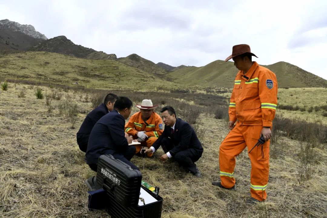 日前,甘肃省祁连山林区司机社干警和祁连山管护中心祁连自然保护站工作人员对生态修复基地的补植复绿情况进行回访,并利用公益诉讼取证设备开展土壤监测分析。(本报记者南茂林摄)