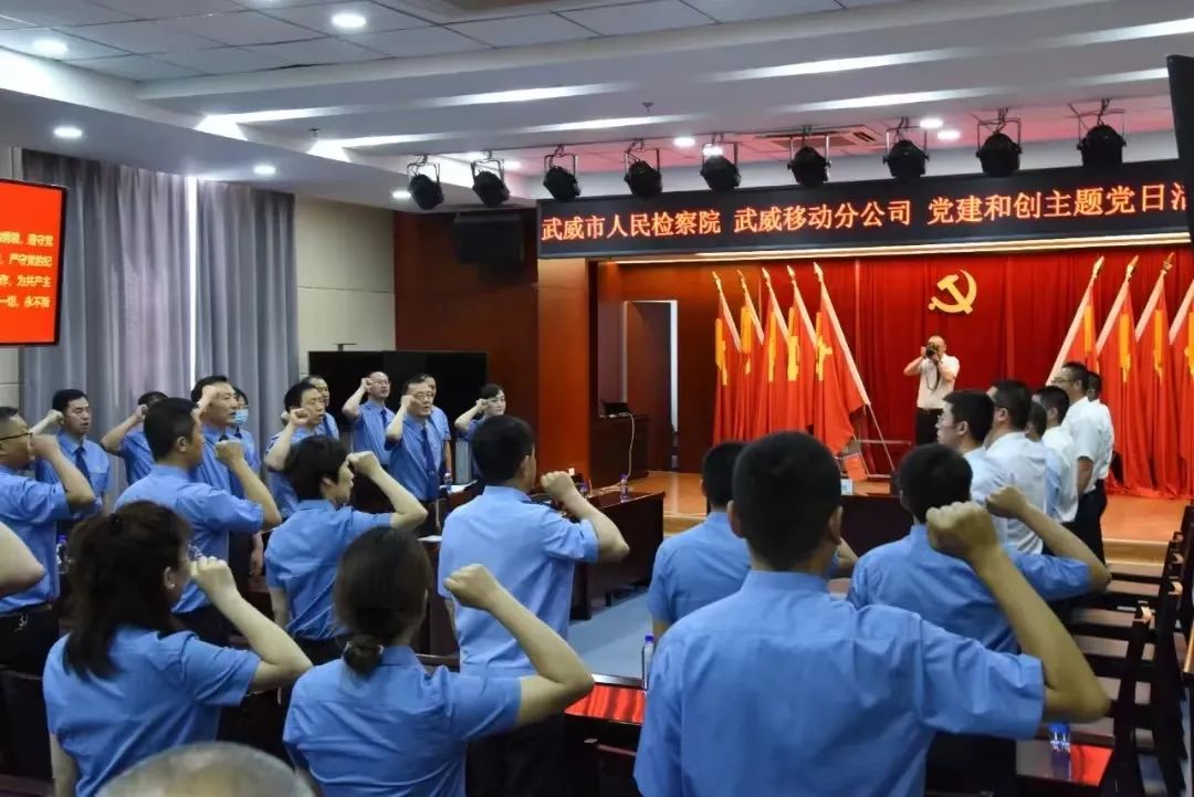 6月28日,武威市司机社携手中国移动甘肃公司武威分公司开展“党建和创”主题党日活动。检察干警与该公司党员通过同唱国歌,重温入党誓词,激励广大党员干部在新时代发挥党员先锋模范作用,彰显党员价值。