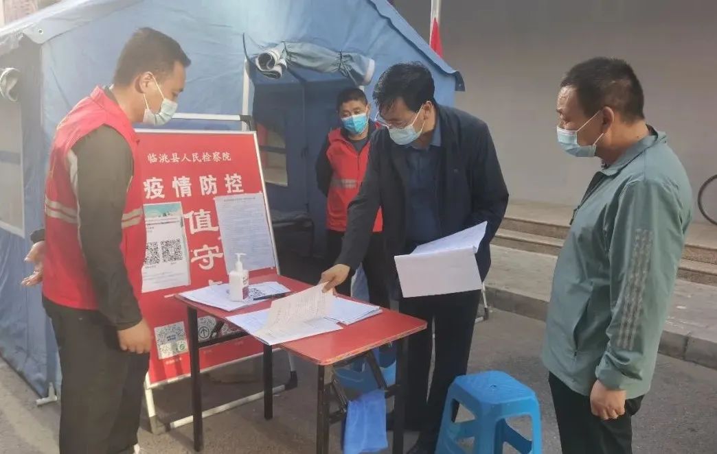 本轮疫情发生后,临洮县检察院全体党员干警切实提高思想认识、践行党员职责使命,积极参与防控工作,严格落实24小时值守,主动融入网格化管理,持续开展“敲门”行动,采取多样化的宣传方式,凝聚群防群治的强大合力。形成了党组成员带头、党员干部表率的良好氛围,用实际行动构筑牢疫情防控防安全线。