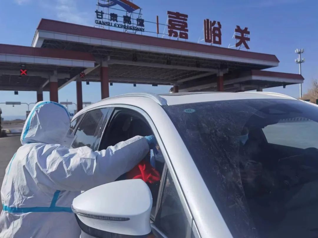 嘉峪关市检察院协同公安、交通、卫健委等部门在高速公路卡口点24小时执勤值守,对来往车辆和人员严格排查,做到“不漏一车、不漏一人”,并耐心引导过往车辆司机做好个人信息登记,确保落实落细各项防控措施。