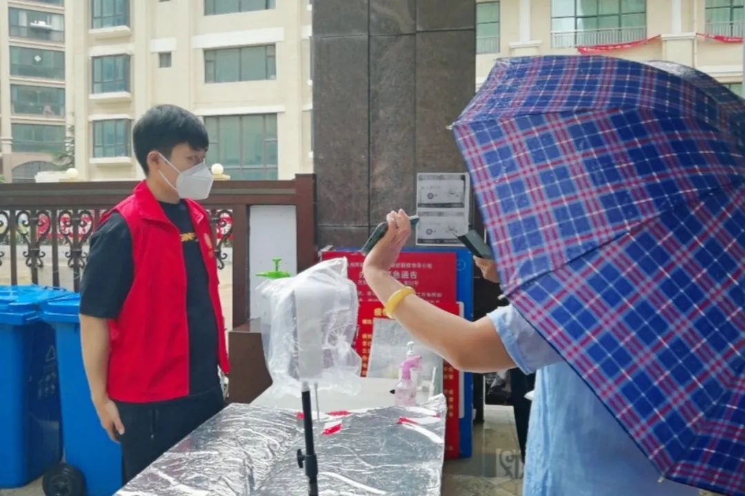 和其他下沉社区的志愿者一样,刘觐瑄值守的“装备”有抗疫志愿者红袖章、N95口罩,消毒酒精、一双乳胶手套,在“全副武装”后,他加入到每日维持核酸检测队伍秩序、居民核酸信息登记、人员劝返等工作。