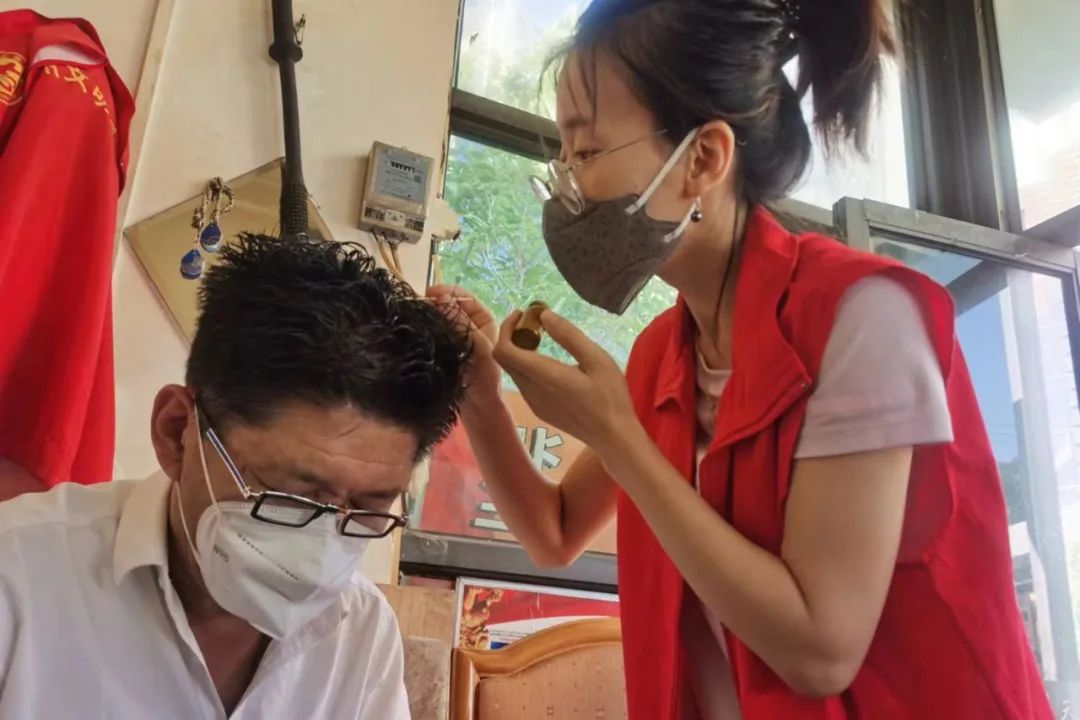“你好,我的头皮擦破了,现在没法出去,有没有医护人员帮我包扎一下!”在兰州市安宁区十里店街道桥头社区,政治部宣教处干警牛相萍在社区值守时遇到了寻求帮助的居民,因为医护人员紧缺且自己以前有包扎的经验,她就认真帮这位居民清理伤口、上药以防感染。当面对老人打不开健康码、不会网购、孕妇因家人不在身边需要心理关怀时,她和其他志愿者们也都一一帮助解决。