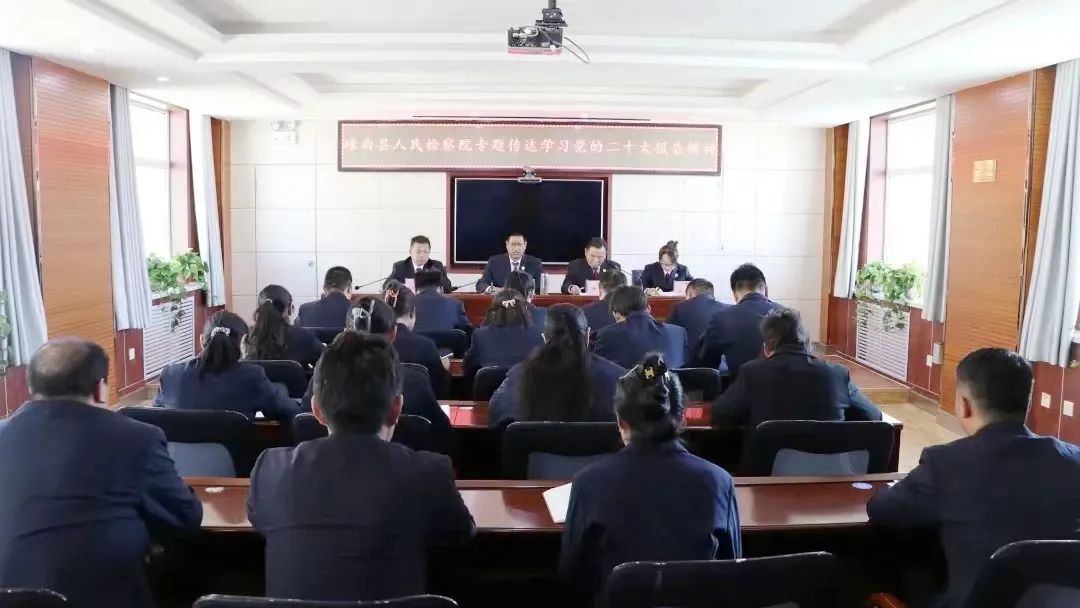 近日,清水县检察院通过全院大会、主题党日、周调度会等多种形式,认真传达学习党的二十大精神。会议要求,要认真学习领会党的二十大精神内涵、核心要义,不断增强学习贯彻落实的政治自觉、思想自觉、行动自觉。要全面充分履行法律监督职能,深耕主责主业,主动担当作为,落细落实“六项重点工作”,积极服务保障高质量发展、科教兴国战略实施、社会主义文化建设、人民生活水平提高、生态环境保护、国家安全和社会稳定维护等,以检察工作高质量发展服务保障经济社会高质量发展。