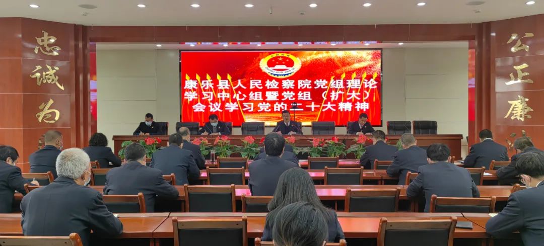 10月31日,康乐县检察院党组书记、检察长马晓元主持召开党组理论学习中心组暨党组(扩大)会议,专题传达学习党的二十大精神。会议要求,要以党的二十大精神为统领,努力把深入学习党的二十大精神与做好当前工作、完成全年目标任务、统筹谋划好明年工作结合起来,坚持依法能动履行检察职能,切实维护好人民群众合法权益,把党的二十大精神切实转化为推动新时代检察工作高质量发展的生动实践和扎实成效,确保优质高效的完成年初确定的各项工作任务。