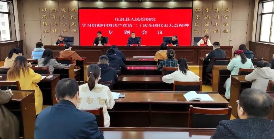 近日,庄浪县检察院党组书记、检察长王军雄主持召开专题会议,传达学习党的二十大精神。会议要求,要更加自觉把“从政治上看”融入到检察工作中,找准厘清党的二十大报告中的法治元素、检察元素,以刑事、民事、行政、公益诉讼“四大检察”职能的全面履行,全力推动党的二十大精神贯彻落实。要立足检察职能,抓好服务乡村振兴工作,服务保障好九大产业链建设,为庄浪经济社会高质量发展贡献检察力量。