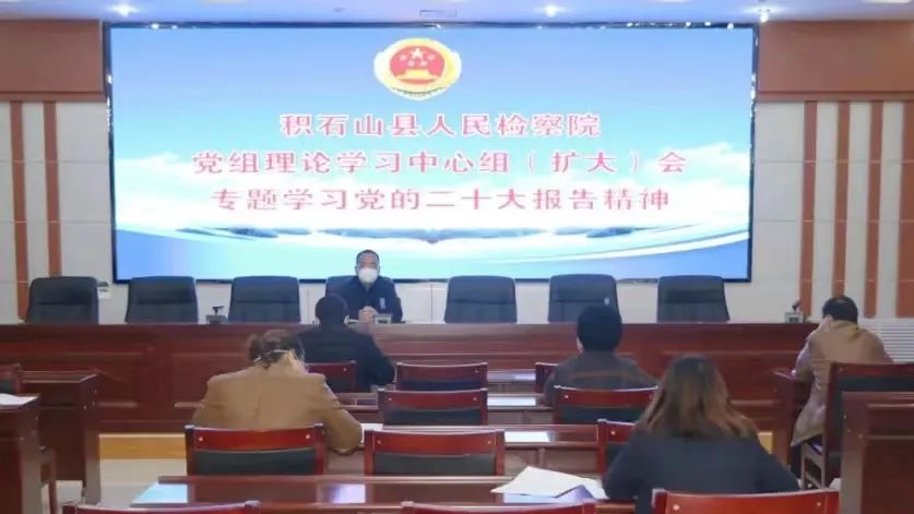 近日,积石山县检察院党组书记、检察长马凌云主持召开党组理论学习中心组(扩大)会议,专题学习党的二十大精神,研究部署贯彻措施。会议要求,要深刻领会报告精神,牢牢把握核心要义,全面对标对表抓好贯彻落实,确保党的二十大精神落地生根。要坚持以党的二十大精神为引领,紧密结合各级党委和上级院的部署要求,深入分析研判检察工作面临的新形势,着力补短板、强弱项,确保学习成果的有效转化,为中华民族伟大复兴贡献检察智慧和检察力量。