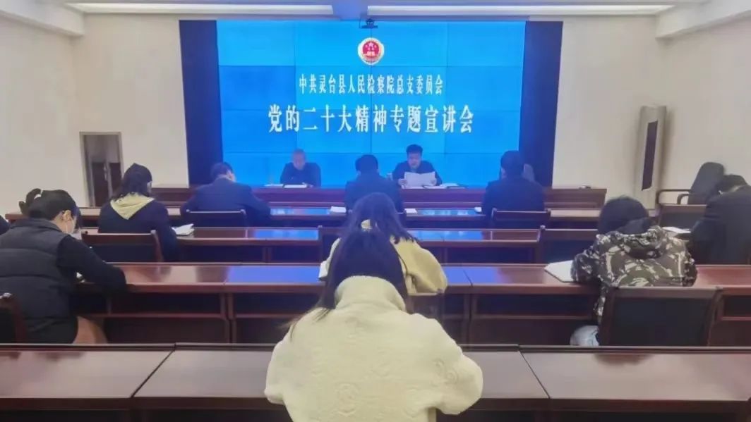 近日,灵台县检察院党总支召开全体党员大会,专题宣讲党的二十大精神。会议要求,要学习好、贯彻好党的二十大精神,从中深刻感悟百年大党初心不改、矢志不渝的执着和坚定,思想上受启迪,行动上见成效,切实将党的二十大精神贯穿到检察工作全过程。要把学习成果转化为推动检察工作的强大力量,充分发挥职能作用,努力解决人民群众“急难愁盼”问题,做好检察为民办实事,为县域经济社会发展、平安建设提供有力司法保障。