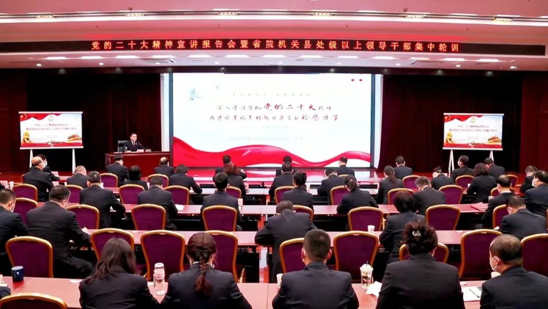 召开学习贯彻党的二十大精神宣讲报告会,并对机关县处级以上同志开展集中轮训。党组书记、检察长朱玉以“深入学习贯彻党的二十大精神 为建设幸福美好新甘肃贡献检察力量”为题作报告,从党的二十大的主要精神、二十大关于全面依法治国的部署要求、结合司机社