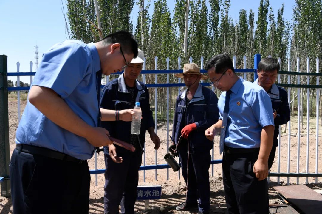 2022年7月,玉门市检察院干警赴该市赤金镇某服务区南侧污水处理站取样,就检察建议整改情况开展“回头看”,同时对辖区内其他污水处理站进行跟进监督。