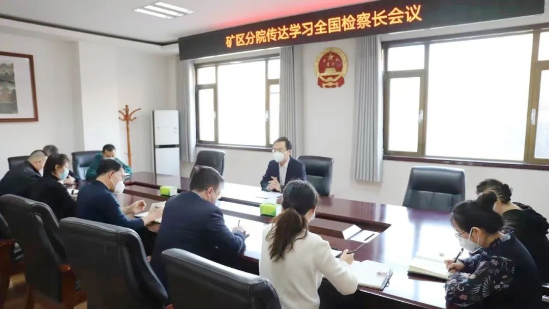 矿区分院党组书记、检察长罗新超主持召开党组中心组理论学习(扩大)会议,传达学习全国检察长会议精神,提出贯彻落实措施。会议要求,要坚持把以人民为中心的发展思想融入到检察履职全过程,进一步转变检察理念,认真总结2022年检察工作完成情况,查漏补缺,固强补弱,围绕全国检察长会议精神,认真谋划2023年工作,立足对全省涉环境资源类案件集中管辖和业务指导的主责主业,牢记初心使命,为建设山川秀美、生态优良的美丽甘肃努力奋斗。