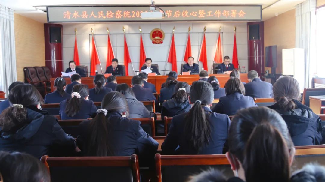近日,清水县检察院党组书记、检察长熊鹏飞主持召开2023年工作部署大会。会议要求,要严格遵守各项纪律,以更饱满的热情、更充足的干劲、更实的举措、更严的要求、更高的标准投入到新一年工作中,确保各项目标任务圆满完成。要对标争先进位要求,认真查找工作短板,科学谋划2023年工作思路和安排,努力形成凝心聚力、提速争先的良好工作氛围。要紧紧围绕全县经济社会发展大局和检察中心工作,提振信心、奋勇前行,为新一年实现检察工作新发展、新突破提供坚强保障。