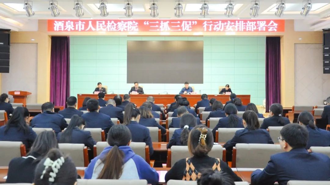 2月17日,酒泉市检察院召开“三抓三促”行动安排部署会。会议要求,要把“三抓三促”行动同主题教育、“铸忠诚警魂”活动结合起来,同市检察院党组“一四五”工作要求结合起来,同市检察院大学习大调研大讨论活动结合起来,同检察工作服务中心大局结合起来,把工作重心和着力点放在抓落实上,持续抓好“四大检察”“十大业务”;要加强组织领导,坚持以上率下,强化督促考核,营造浓厚氛围,做到严于律己、严负其责、严管所辖,确保“三抓三促”行动走深走实、达到预期目的和效果。