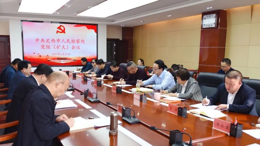 2月28日上午,定西市检察院党组书记、检察长石占全主持召开党组(扩大)会议,专题学习传达全省检察长会议精神。会议要求,要深刻认识新时代新征程检察工作现代化的时代背景、历史方位、深刻内涵,自觉将检察工作融入全市经济社会高质量发展大局,依法能动履行检察职能,更加有力维护安全稳定、服务经济发展、保障民生民利、助推法治建设、助力反腐败斗争,彰显检察担当。要持续深化改革,完善落实定西市检察机关一体化机制工作办法,促进“四大检察”全面协调充分发展。要持续争先创优,注重出亮点树品牌,狠抓“数字检察”建设,实施“文化育检”工程,促进检察工作不断提档升级。