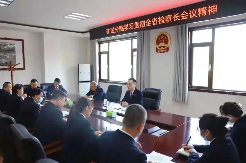 矿区分院党组书记、检察长罗新超主持召开全院干警大会,传达学习全省检察长会议精神。会议要求,要聚焦政治建设,强化组织引领,成立“三抓三促”行动领导小组、改革协调工作领导小组和数字检察协调小组,以头雁效应统筹推动分院检察工作在新要求、新任务上争先创优;要聚焦对全省涉环境资源类案件集中管辖的主责主业,在“攻坚破零”行动取得较好成果的基础上再接再厉,积极打造环境保护公益诉讼“特色名片”;要以求极致的态度,争先进位、守正创新,真正把全省检察长会议对检察工作的新部署、新要求落到实处,切实服务好甘肃发展大局。