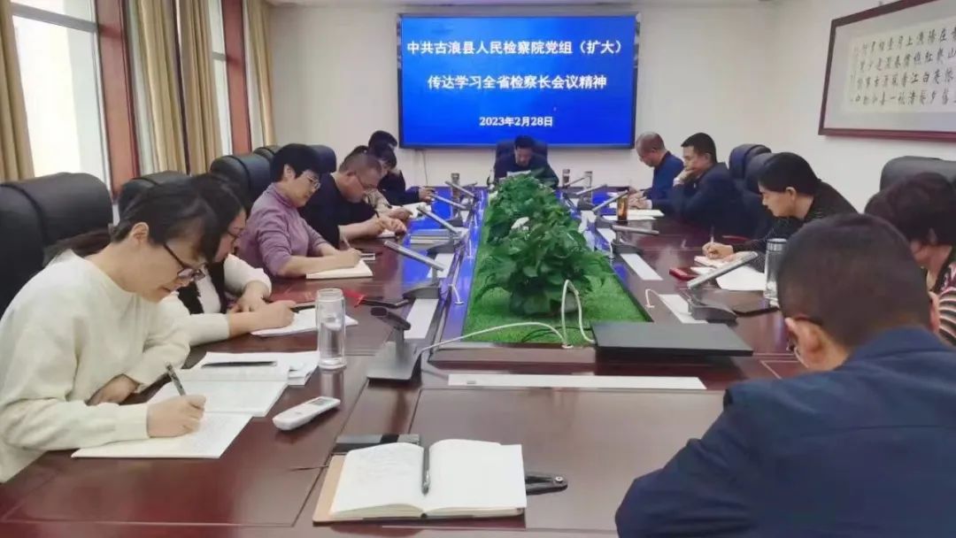 2月28日,古浪县检察院党组书记、检察长张超主持召开党组(扩大)会议,学习全省检察长会议精神。会议要求,要深刻领会全省检察长会议精神,将“三抓三促”行动同做好检察工作提质增效结合起来,厘清工作思路,加强跟踪问效,建立动态工作清单。始终把检察工作现代化落实到检察履职全过程各环节,着力加强刑事检察监督,扎实推进民事检察监督,补强行政检察监督,抓好公益诉讼检察工作,推动检察事业实现新的突破。