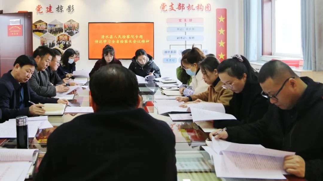 2月28日,清水县检察院党组书记、检察长熊鹏飞主持召开党组(扩大)会议,专题传达学习全省检察长会议精神。会议要求,要全面准确贯彻新发展理念,结合检察工作实际,深化县情认识,找准检察工作和服务县域经济社会大局的切入点、结合点、发力点,以“我管”促“都管”,提升生态综合治理水平,用心用情办好群众身边的“小案”“小事”,助力保障乡村振兴,全力维护社会稳定,以法治之力服务县域经济社会高质量发展。