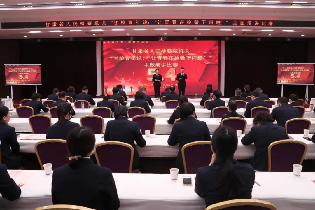 机关举办“甘检青年说:让青春在检徽下闪耀”主题演讲比赛,此举是学习贯彻习近平新时代中国特色社会主义思想主题教育、“三抓三促”行动、“铸忠诚警魂”活动以及争创全国文明单位活动的具体举措之一。机关6个年轻干部学习小组分别选派干警参加比赛,该院二级高级检察官、特级检察官助理、各部门负责人及干警在现场观看比赛。