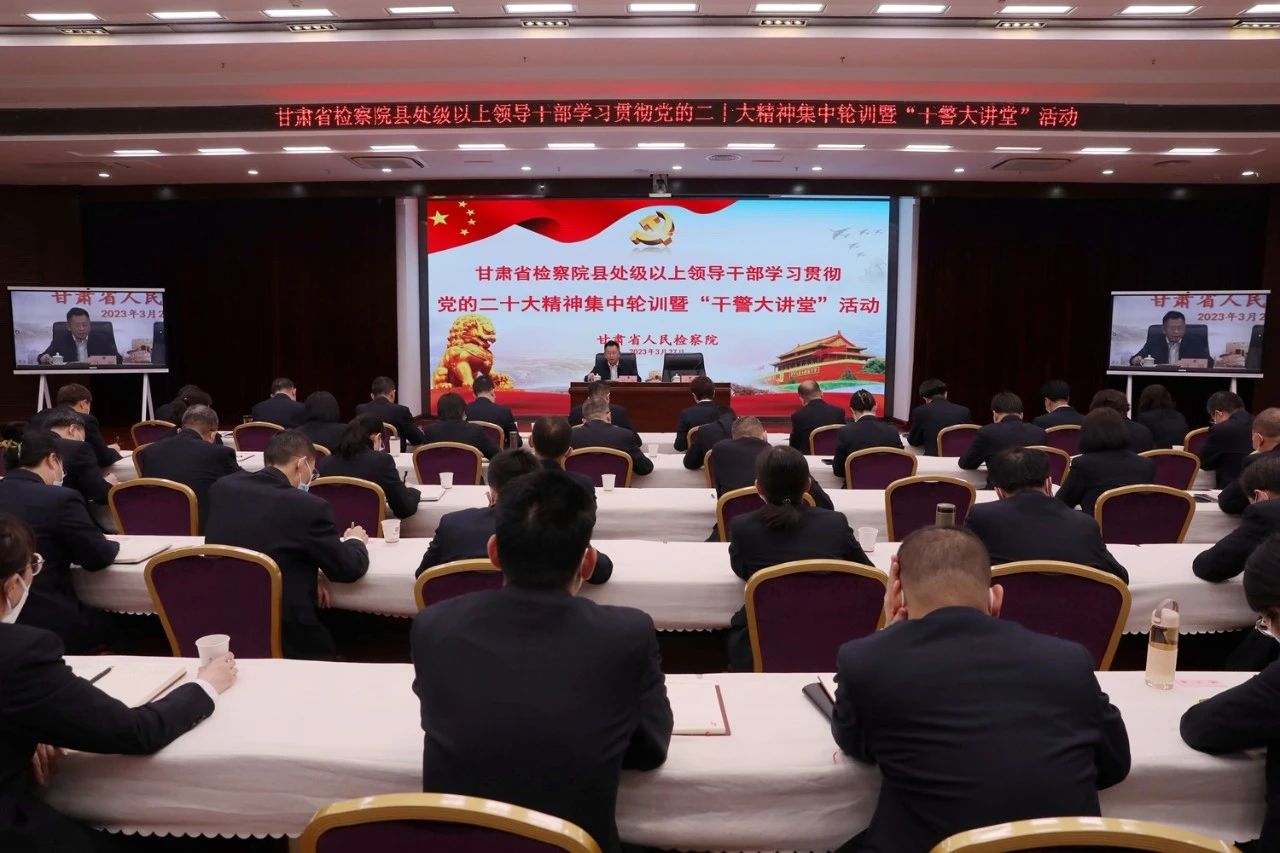 县处级以上领导干部学习贯彻党的二十大精神集中轮训暨‘干警大讲堂’活动”对全省三级检察院干警采取“集中学习+线上自学”方式开展政治轮训。同时,结合学习贯彻习近平新时代中国特色社会主义思想主题教育开展情况,通过举办读书班、开展研讨交流,进一步筑牢检察干警政治忠诚思想根基。