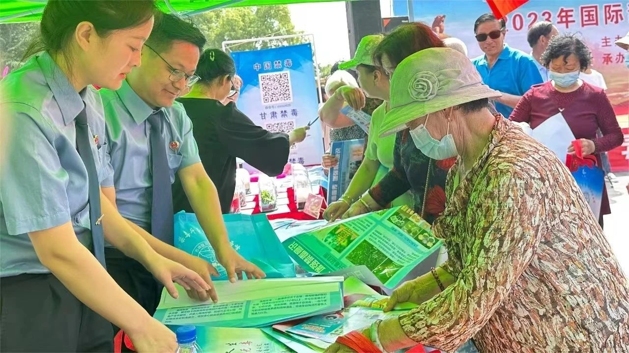 为深入贯彻落实习近平总书记关于禁毒工作重要指示精神,持续掀起禁毒宣传教育热潮,广泛动员社会力量参与禁毒斗争,在第36个国际禁毒日,甘肃各地检察机关开展了系列禁毒宣传教育活动,积极营造浓厚的禁毒社会氛围,全面提高群众禁毒知识知晓率,增强群众识毒、防毒、拒毒的意识与能力,筑牢全民禁毒防线,共建绿色无毒家园。