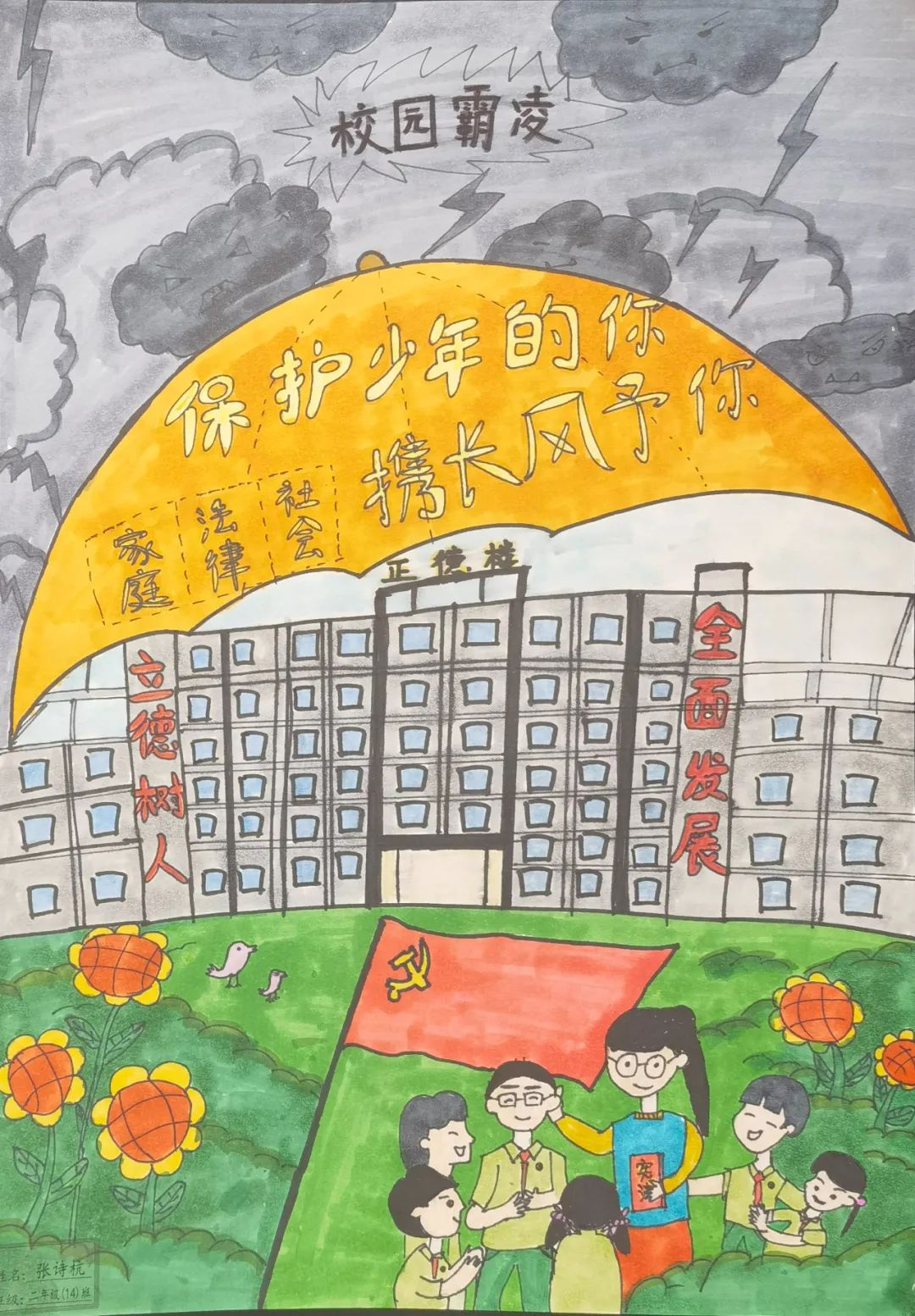 法律作为维护社会正义的一把大伞,为未成年人遮风挡雨,让孩子们在大伞下面快乐健康的成长。青少年是祖国的花朵,需要明媚的阳光守护才能茁壮成长,这阳光就是身边关爱保护未成年人的每一个人。