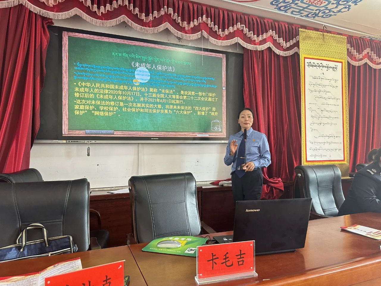 在碌曲县藏族中学,宣讲干警还用藏语言文字开展《中华人民共和国未成年人保护法》专题讲座,深入浅出地解读,加深中学生对相关法律法规的理解,提高自我保护能力。