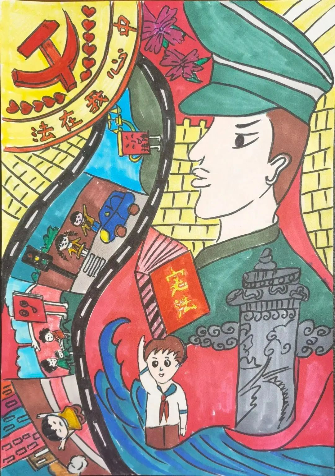 今天,我们看到孩子们用手中的画笔,记录着颗颗“法治种子”开花、结果的美好历程。