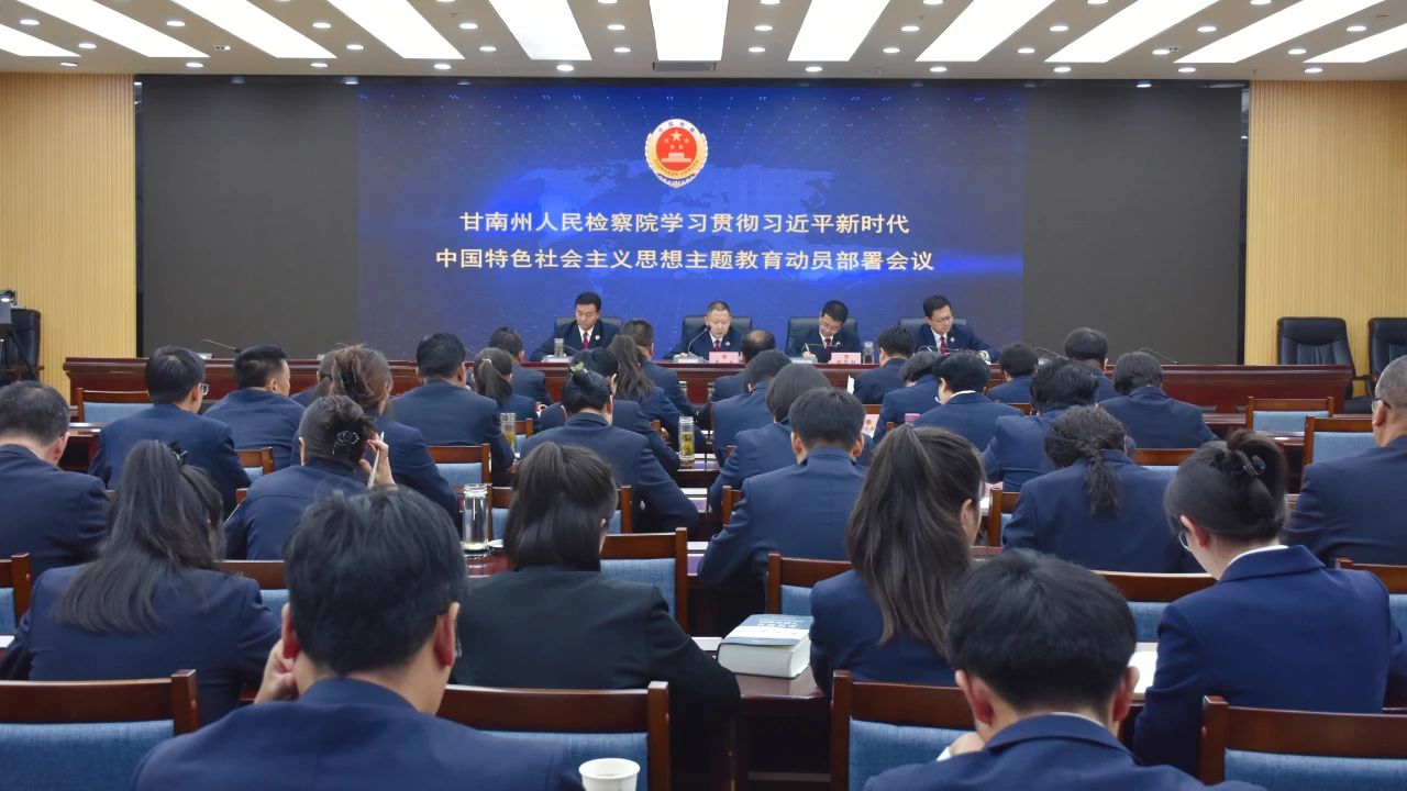 甘南州检察院召开学习贯彻习近平新时代中国特色社会主义思想主题教育动员部署会,深入贯彻党中央、省委、州委对扎实开展第二批主题教育的部署要求,对州院开展主题教育进行动员部署。该院党组书记、检察长王龙要求,要深刻领会主题教育的重大意义,牢牢把握主题教育的目标任务,强化理论学习,抓实检视整改,做好建章立制,推动检察工作高质量发展,努力开创检察事业发展新局面。