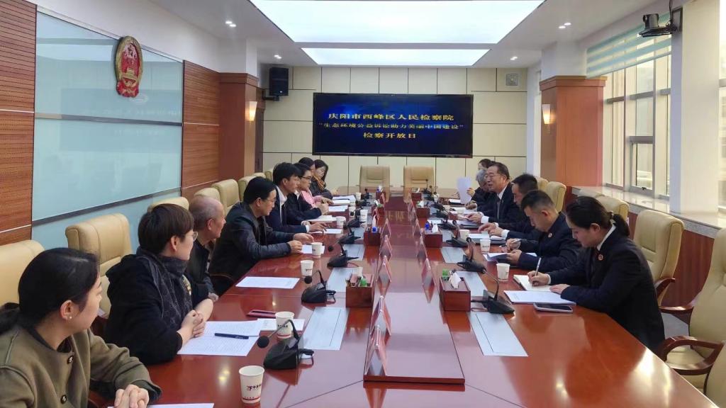 庆阳市西峰区检察院开展检察开放日活动,邀请区人大代表、政协委员、听证员、“益心为公”志愿者参观12309检察服务中心、检察听证室,近距离了解该院生态环境公益诉讼工作开展情况。受邀代表对西峰区检察院开展生态环境公益诉讼工作取得的成效予以肯定,并对公益诉讼检察工作积极建言献策。