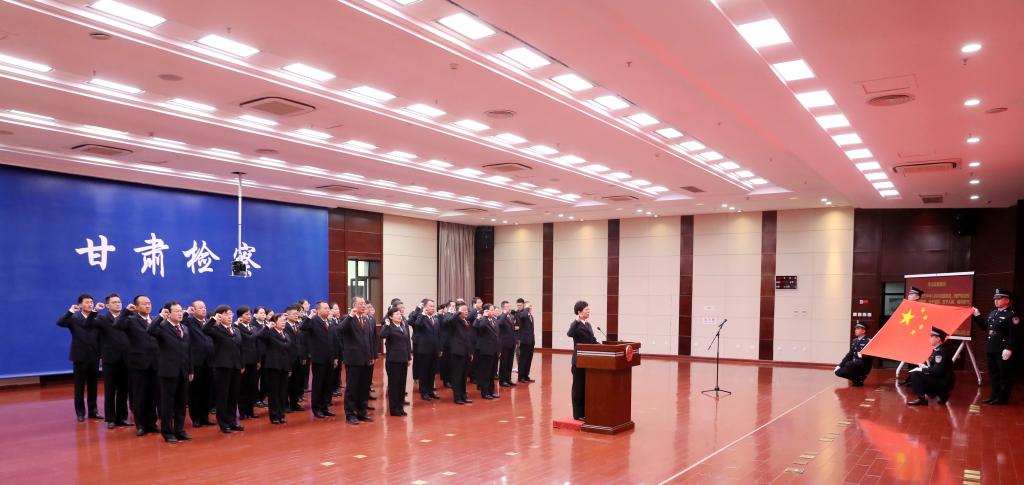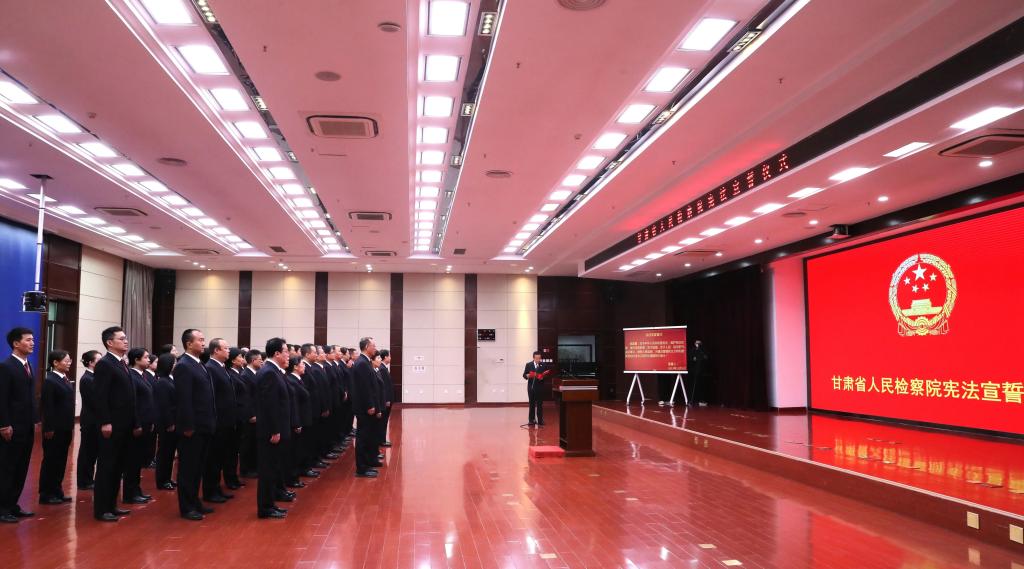 党组要求,全体检察干警要不断强化宪法意识、弘扬宪法精神、遵守宪法法律、加强宪法实施、维护宪法权威,把誓言时刻铭记于心。要认真学习宪法,衷心拥护宪法,牢靠信仰宪法,切实增强宪法意识和宪法自觉,真正让宪法浸润灵魂、融入血脉。要牢固树立依宪履职、依宪用权的理念,坚决履行宪法法律赋予的神圣职责,严格按照宪法和法律规定的权限和程序行使权力。要确保检察权始终沿着法治轨道运行,努力让人民群众在每一个司法案件中感受到公平正义,坚定不移做宪法的忠实崇尚者、严格遵守者、自觉运用者、坚定捍卫者,为建设幸福美好新甘肃,不断开创富民兴陇新局面作出新的更大贡献。