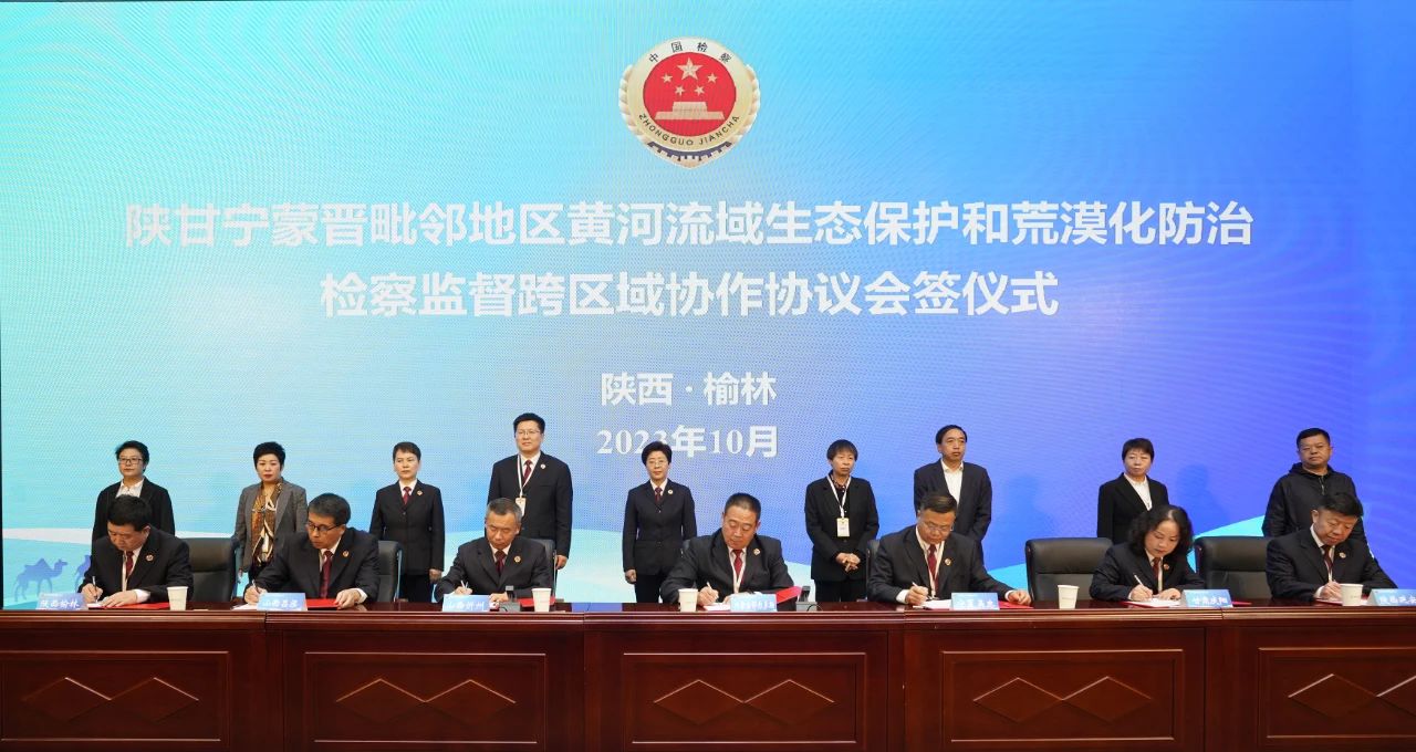 庆阳市检察机关积极参与黄河流域保护与荒漠化防治跨区域检察协作,联合陕西省等四省(区)六市检察机关签署《陕甘宁蒙晋毗邻地区黄河流域生态保护和荒漠化防治检察监督跨区域协作协议》,围绕加强协同办案、联动监督、环境保护等领域,联合出台机制8项,形成多方协作的公益保护格局。