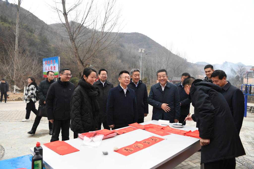 帮扶干部和两当县书协、卫生系统人员正在联合开展“送文化、送法律、送温暖”活动,书法家们挽袖执笔、挥毫泼墨写春联、送“福”字,医务人员量血压、测血糖寻诊把脉,现场洋溢着欢乐祥和节日气息。沈涧驻足观看,与在场群众攀谈交流并送上新春祝福。