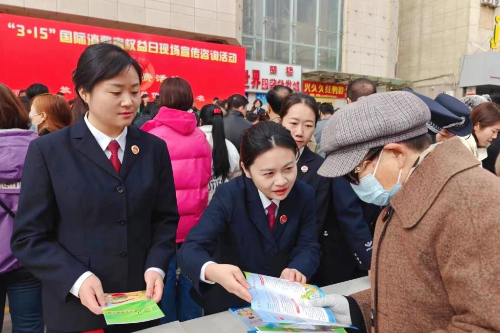 临夏州检察院组织干警到韩集镇芝林广场开展消费者权益保护普法宣传活动,检察干警向来往群众介绍检察机关的公益诉讼职能,宣传《消费者权益保护法》《中华人民共和国民法典》等法律法规,现场解答群众提出的法律疑问,引导消费者依法维权。