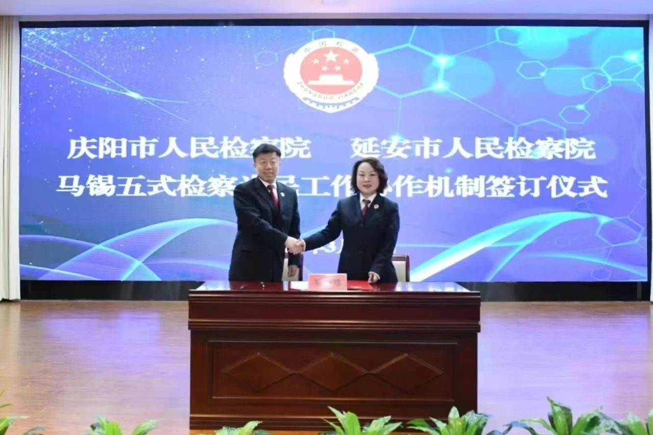 近日,甘肃省庆阳市检察院与陕西省延安市检察院就加强区域协作、推动发展新时代检察版“马锡五式工作法”进行座谈会商,并联合印发《关于建立跨区域马锡五式检察为民工作协作机制的意见》(以下简称《意见》),不断深化“枫桥经验”,弘扬司法为民精神,凝聚法律监督合力,全面提升检察机关整体影响力,努力推动检察工作现代化。